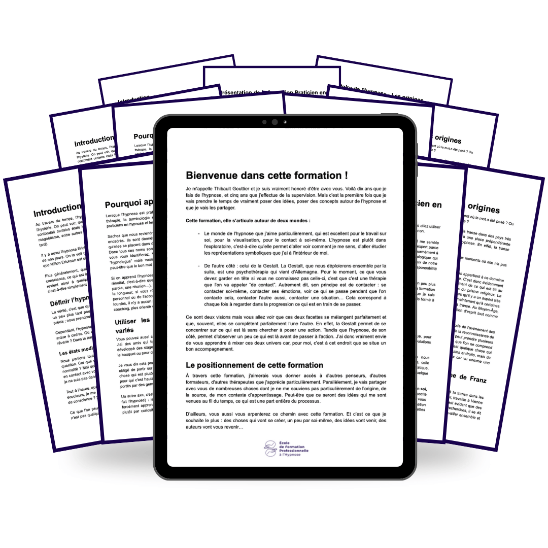 Cette formation est d'abord et avant tout transmise par les sessions de cours en direct et par la pratique (qu'elle soit supervisée dans les cours ou en dehord avec votre groupe d'entrainement). Vous commencez cette formation, vous obtenez :
